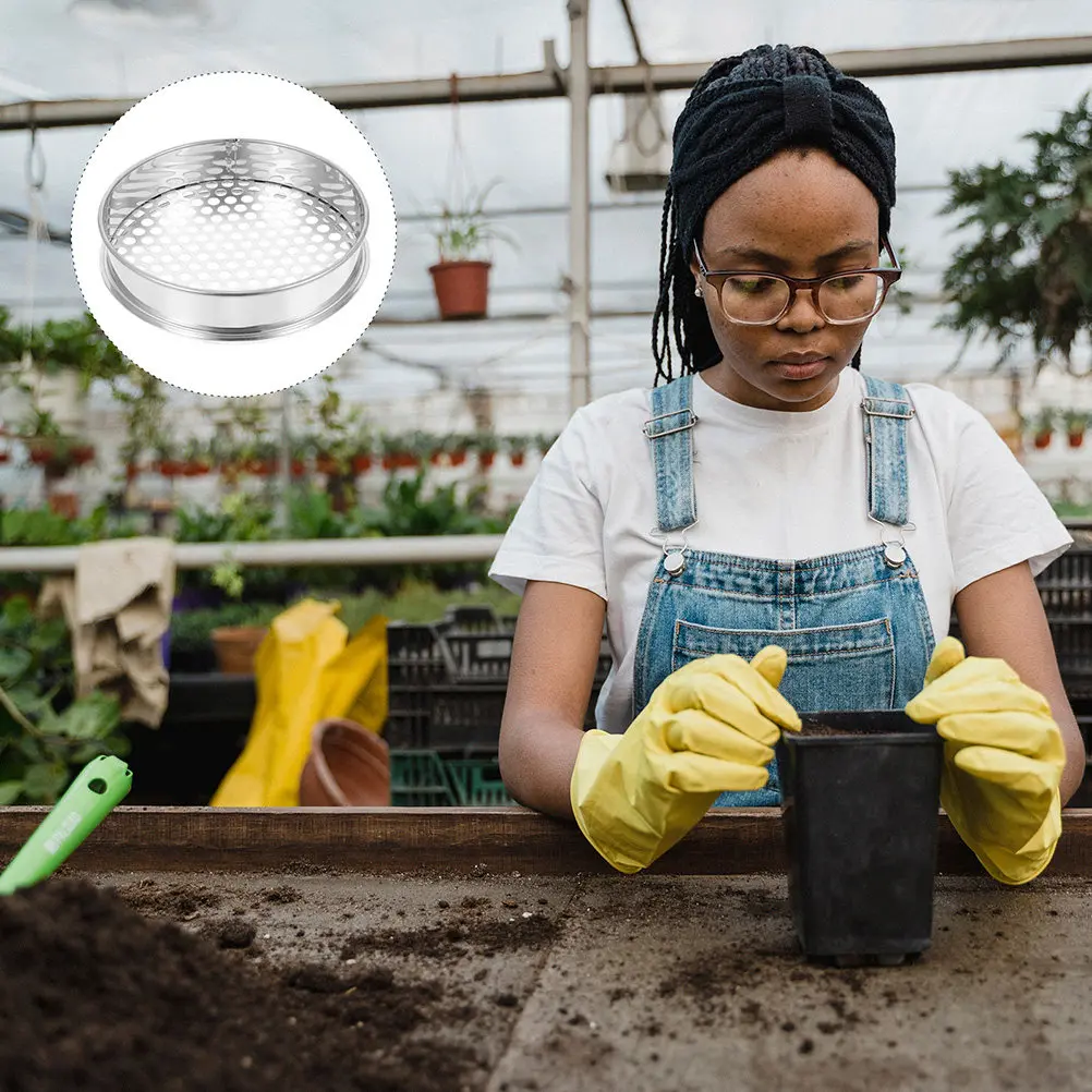 Benefits Efficient Soil Preparation & Cleanup: Fine mesh quickly filters out stones, roots, weeds, and large particles, leaving fine, aerated soil that’s ideal for seed starting, repotting plants, or improving garden beds — saves time and effort compared to hand-sifting. Portable & Lightweight Design: Compact, easy-to-carry sieves are perfect for small spaces, balcony gardening, or taking to community plots; stackable for storage without taking much room in sheds or toolboxes. Durable & Rust-Resistant: Premium stainless steel withstands outdoor weather, moisture, and repeated use without rusting or bending — built to last for seasons of gardening without degrading. Versatile Outdoor Tool: Great for sifting compost to remove unfinished bits, preparing potting mix, straining sand for crafts, or even separating gravel for paths — a handy gadget for home gardeners, plant enthusiasts, or DIY landscaping.